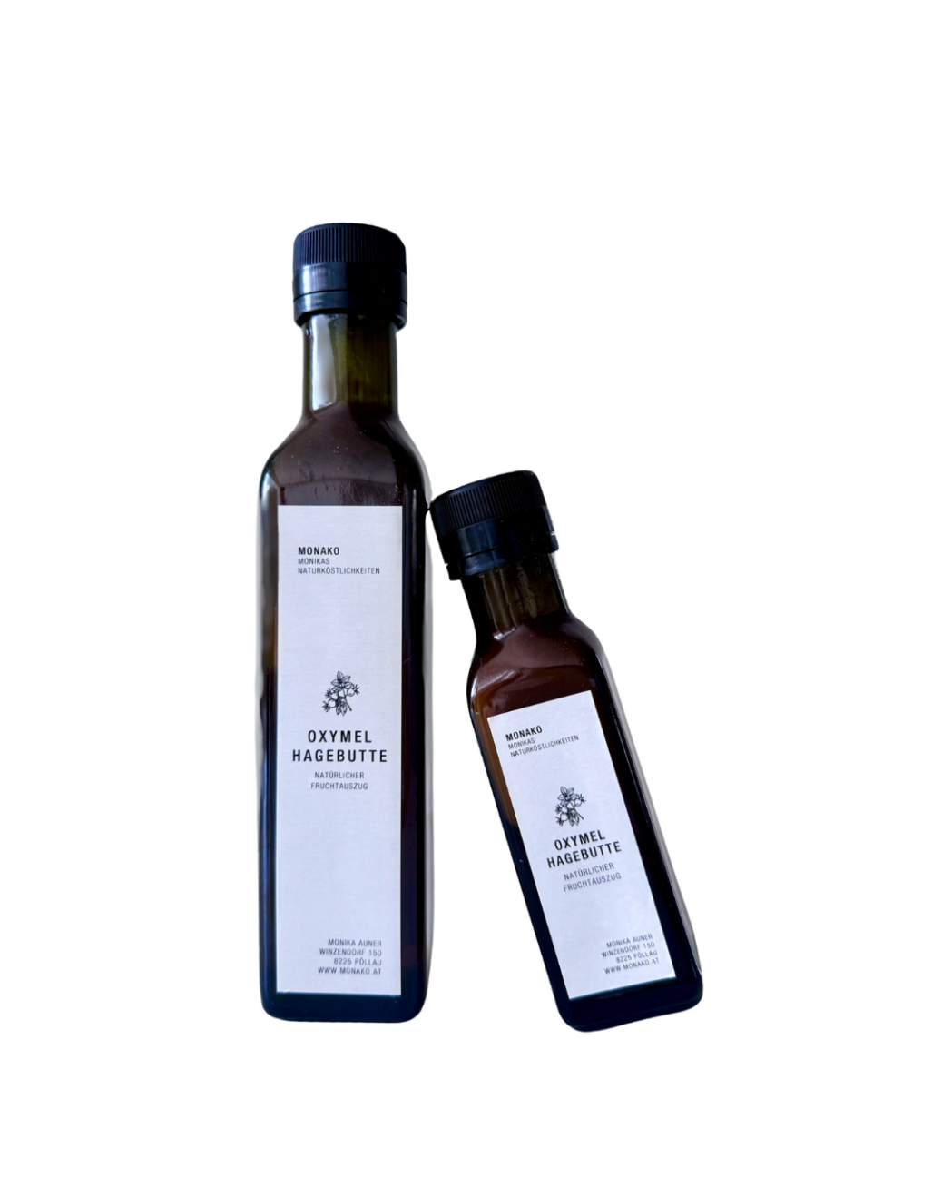 Blütenhonig, Wasser, Apfelessig und ein Kräuterauszug aus Hagebutten und Salz